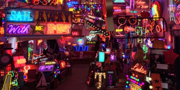 There are floor-to-ceiling neon signs. They glow in every colour you can imagine. Some are cheeky ("Girls, Girls, Girls"), some are nostalgic (movie props and vintage shop signs), and some are just straight-up psychedelic art.